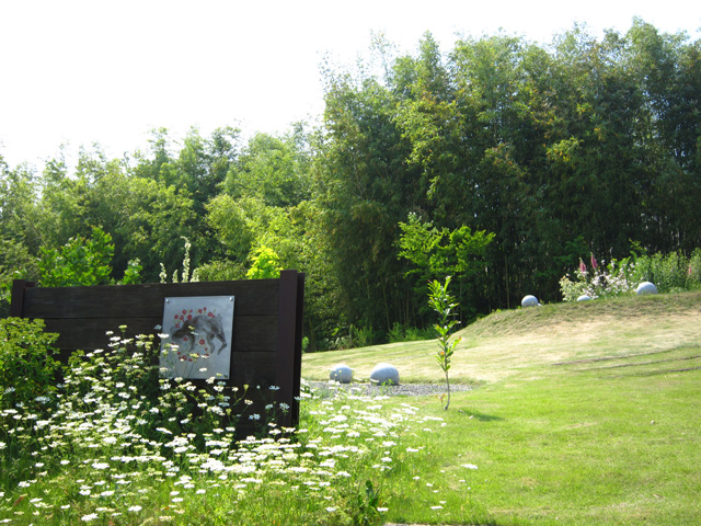 | ちっともお墓らしくありませんが、ペット霊園です。 ペットたちがお花畑で眠りにつくという 住職さんのイメージを形にしました。 丸い石が墓石です。 冬の間はみえていますが、 春の訪れとともに草花の中に埋もれ隠れます。 お墓らしさを強調せず、 公園のような開放的なつくりにすることで、 どの季節でも何度でも訪れやすくなるお墓をめざしました。 |